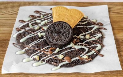 Freshly baked piping hot cookie dough, served with a scoop of Mr. Whippy soft scoop ice cream. Laced with a rich milk chocolate sauce and shavings and wafer.